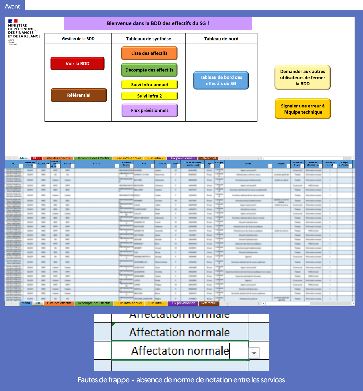 La mauvaise qualité des données la rendait impratiquable pour un traitement automatisé et nécessitait de nombreuses heures de travail de consolidation, de correction et de recherche d’erreurs.